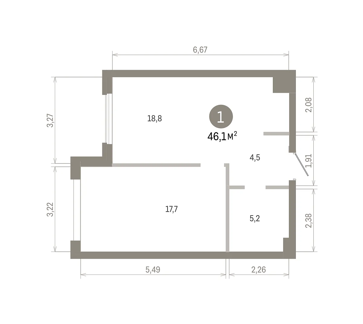 Площадь (общ/жил/кух), м2: 44.12/26.91/5.02