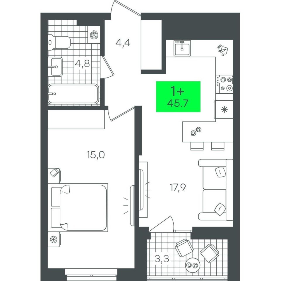 Купить новую однокомнатную квартиру 45.76 м² на 9/22 этаже в ЖК «Гранд Квартал», г. Тюмень за 7410000 ₽ | Агентство недвижимости «Вплюсе.Топ» — Агентство недвижимости "Вплюсе.Топ"