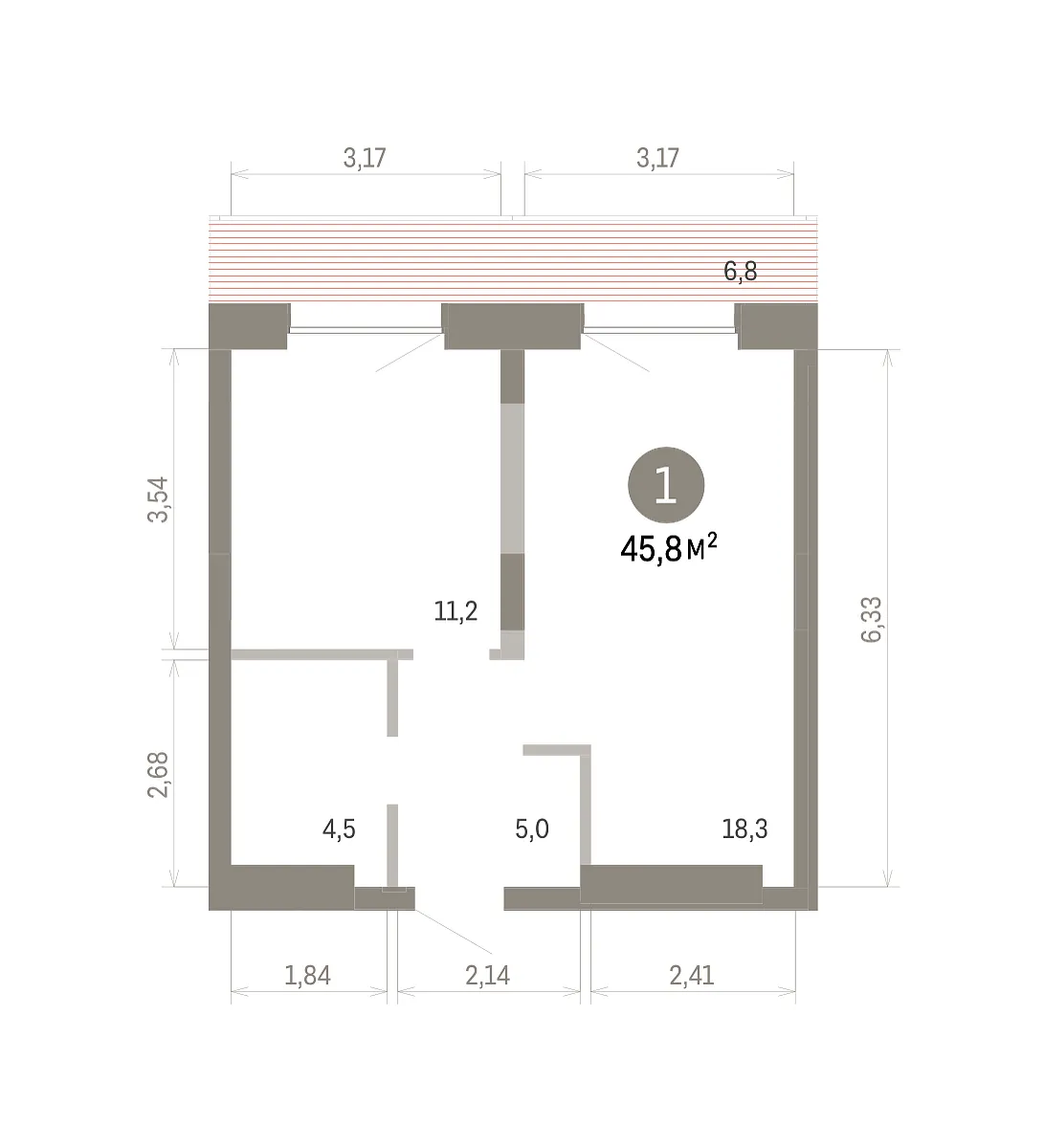 Общая площадь 45.8 м2