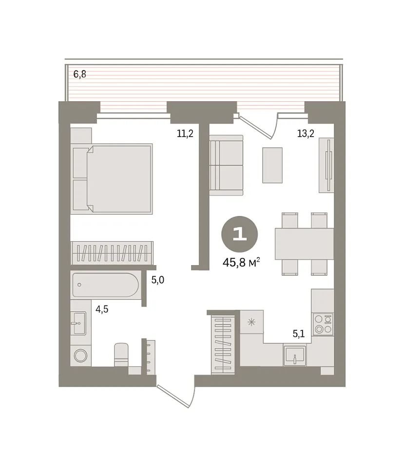Количество комнат: 1, 45.8 кв.м.