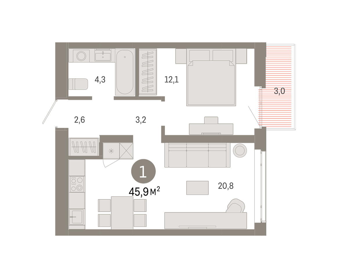 Купить новую однокомнатную квартиру 45.89 м² на 4/9 этаже в ЖК «Республики 205», г. Тюмень за 7350000 ₽ | Агентство недвижимости «Вплюсе.Топ» — Недвижимость России