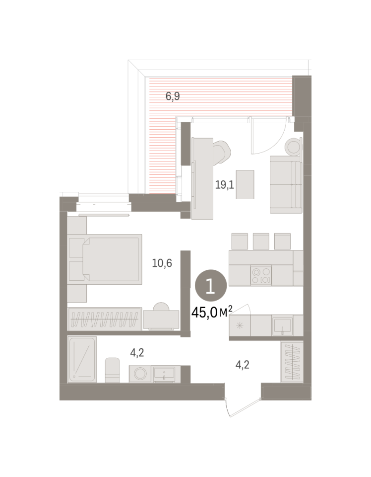 Площадь (общ/жил/кух), м2: 42.87/12.07/21.54