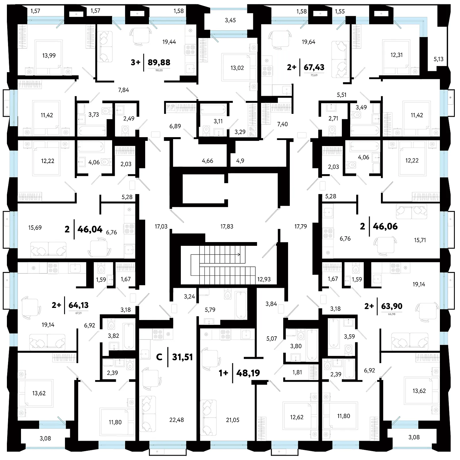 Общая площадь 46.06 м2