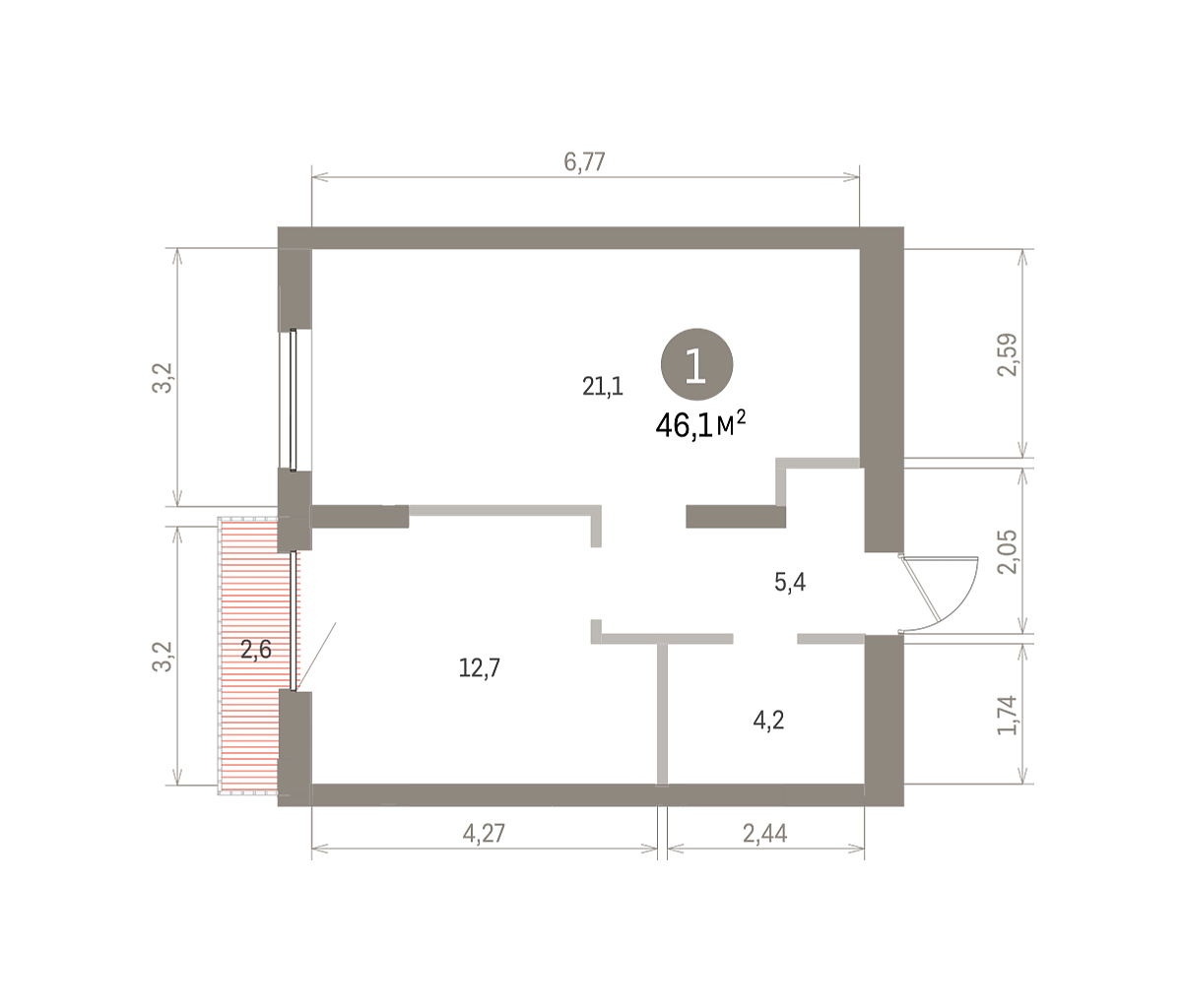 Площадь (общ/жил/кух), м2: 44.28/32.52/1.79