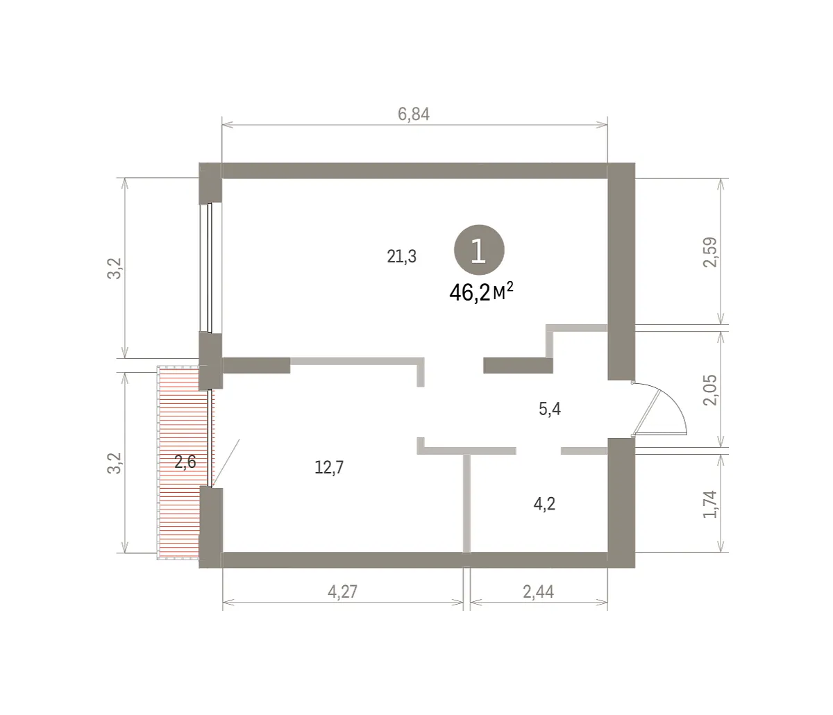 Площадь (общ/жил/кух), м2: 44.28/32.52/1.79