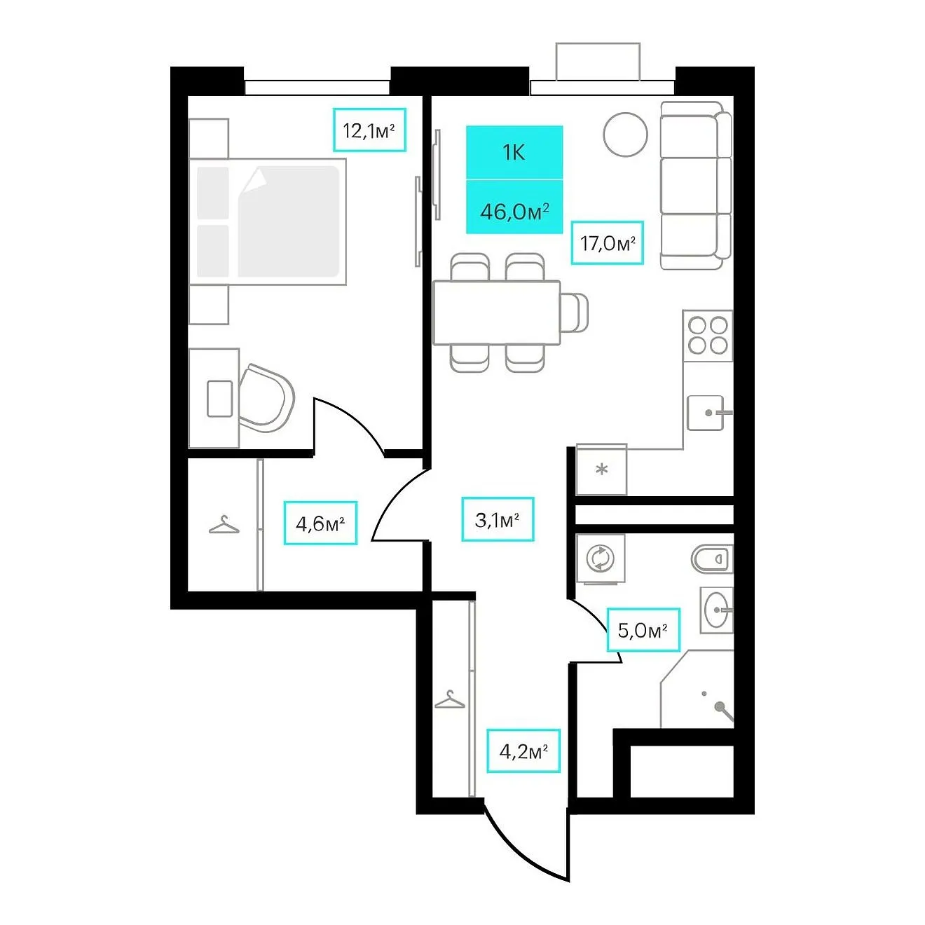 Общая площадь 46 м2