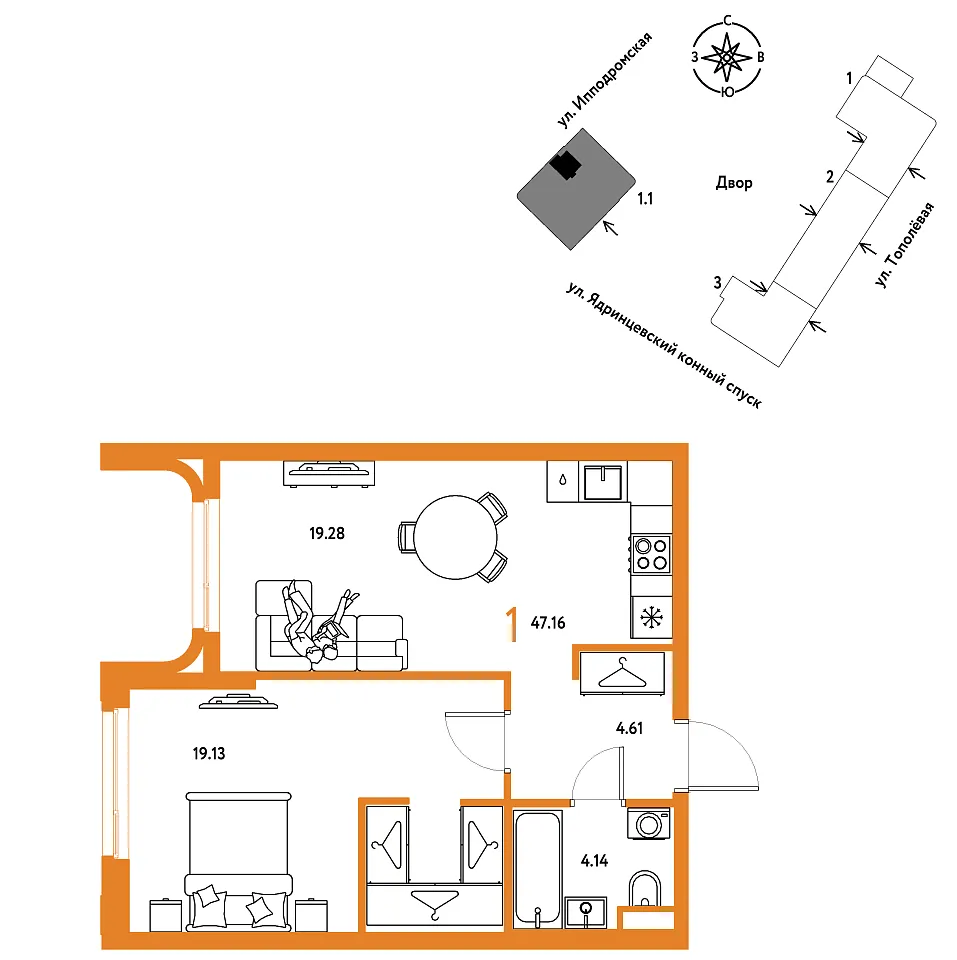 Количество комнат: 1, 47.16 кв.м.
