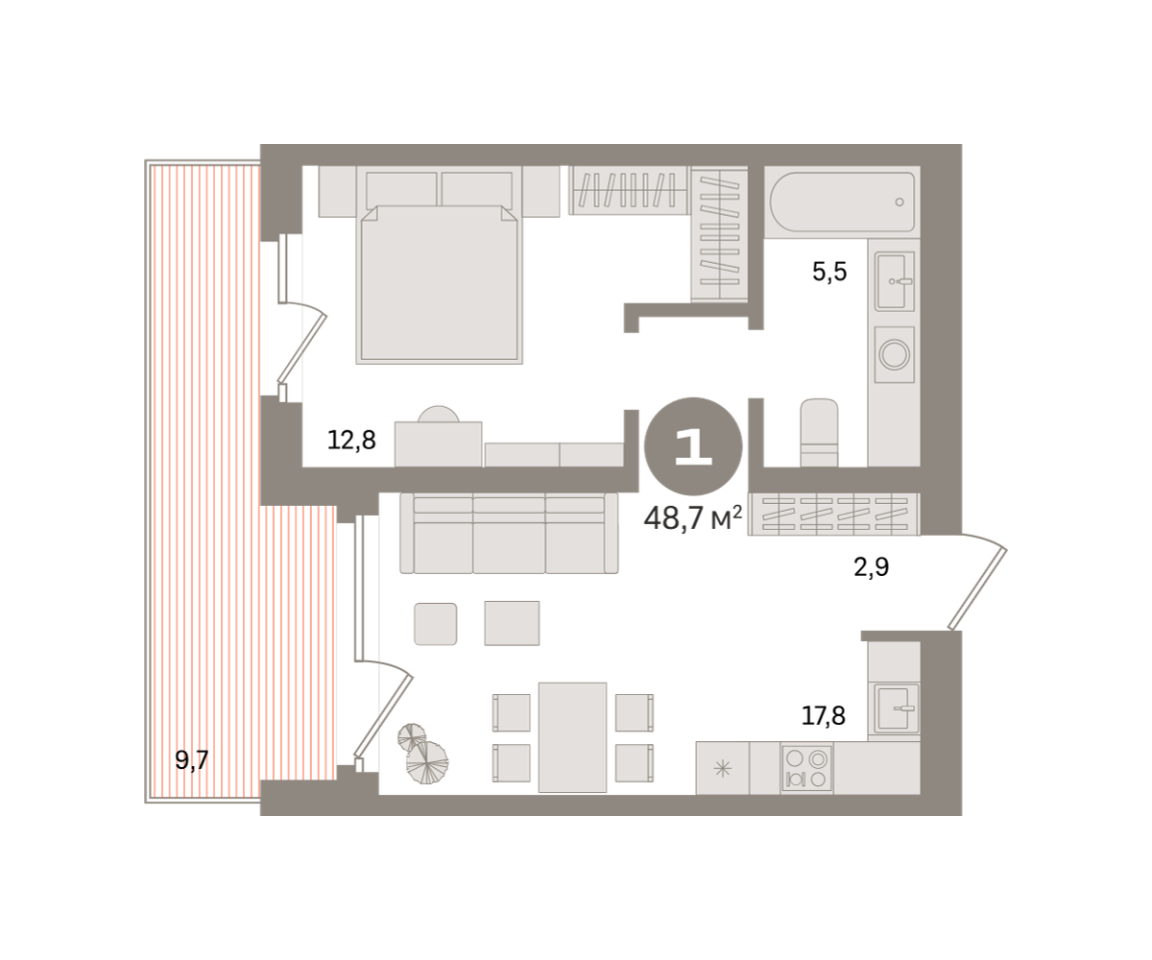Площадь (общ/жил/кух), м2: 48.5/11.7/17.8