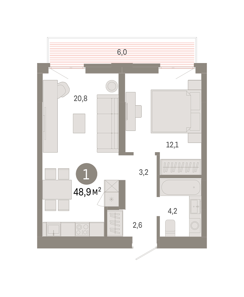 Купить новую однокомнатную квартиру 48.88 м² на 5/8 этаже в ЖК «Республики 205», г. Тюмень за 6840000 ₽ | Агентство недвижимости «Вплюсе.Топ» — Недвижимость России
