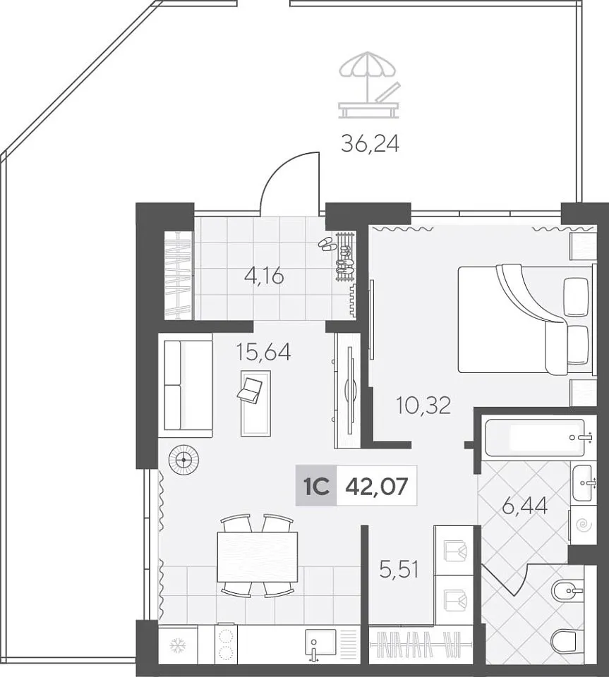 Площадь (общ/жил/кух), м2: 42.3/—/23.6