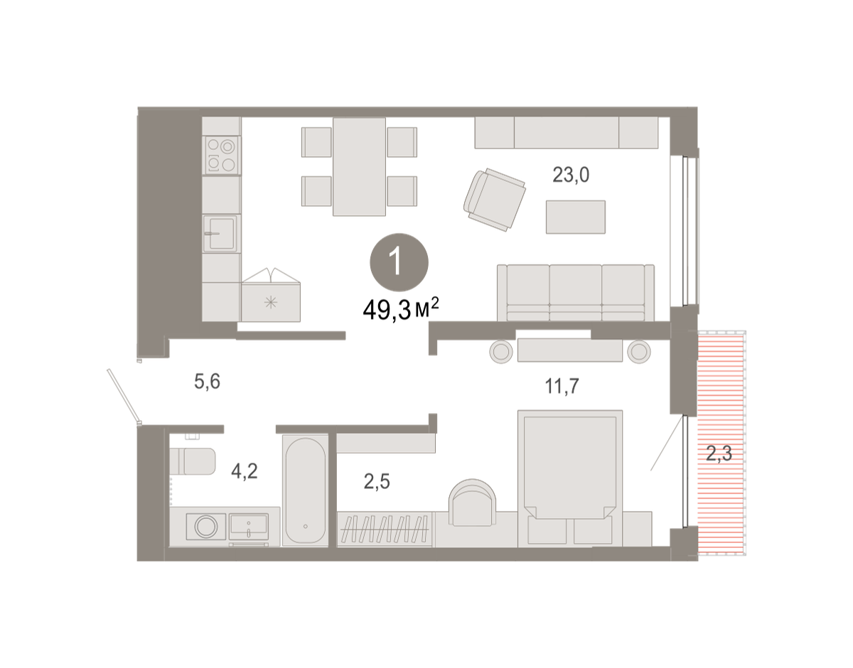 Купить новую однокомнатную квартиру 49.29 м² на 3/17 этаже в ЖК «Октябрьский на Туре», г. Тюмень за 6900000 ₽ | Агентство недвижимости «Вплюсе.Топ» — Агентство недвижимости "Вплюсе.Топ"