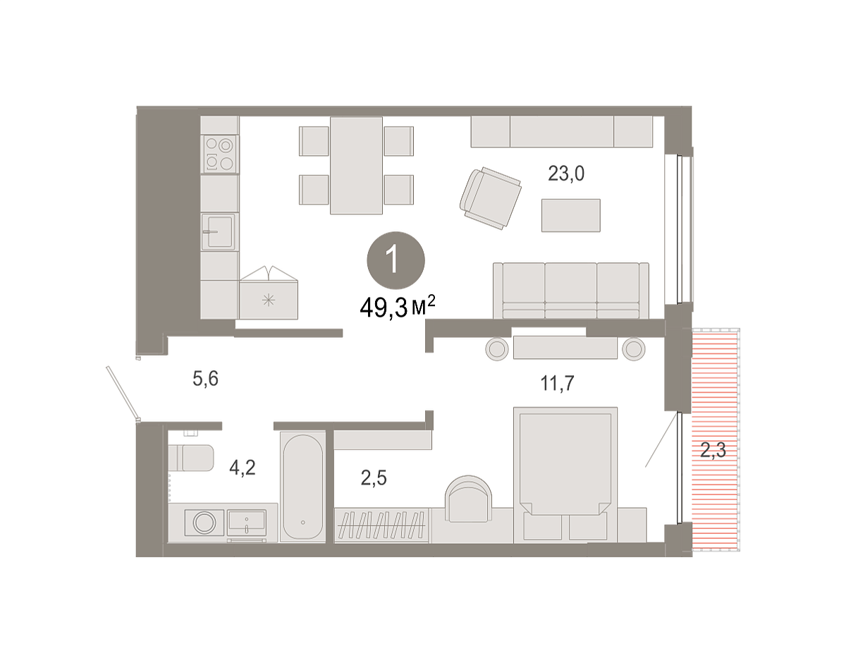 Площадь (общ/жил/кух), м2: 49.29/11.69/23