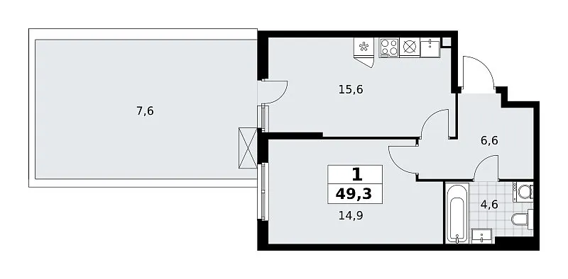 Площадь (общ/жил/кух), м2: 49.3/—/11