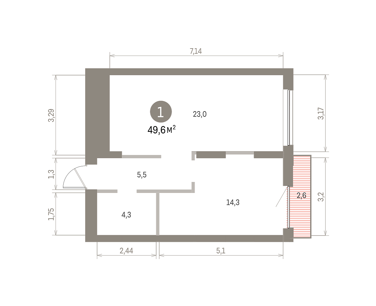 Количество комнат: 1, 49.59 кв.м.
