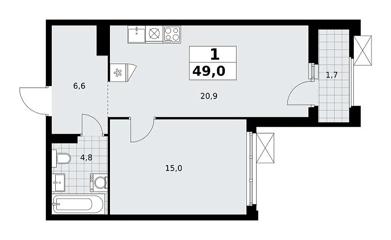 Площадь (общ/жил/кух), м2: 49/—/20.9
