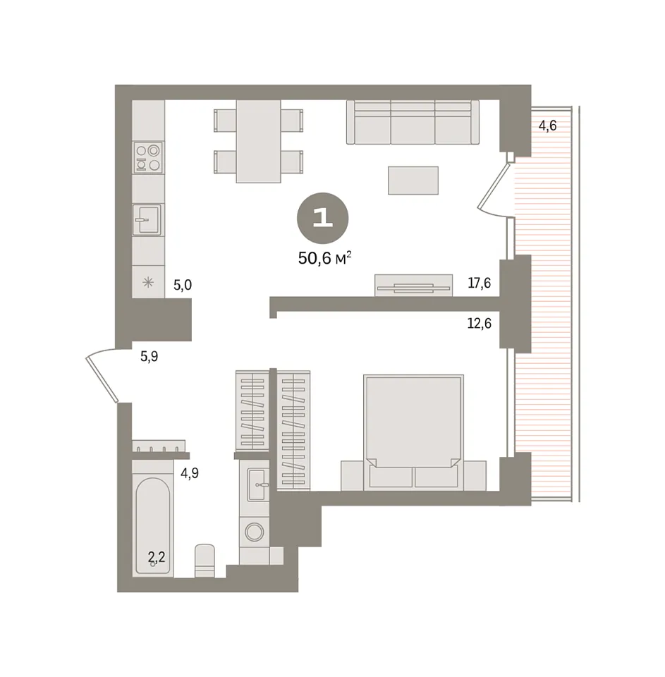 Купить новую однокомнатную квартиру 50.6 м² на 7/9 этаже в ЖК «Речной порт», г. Тюмень за 9920000 ₽ | Агентство недвижимости «Вплюсе.Топ» — Недвижимость России