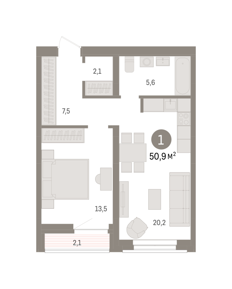 Площадь (общ/жил/кух), м2: 50.9/13.5/20.2