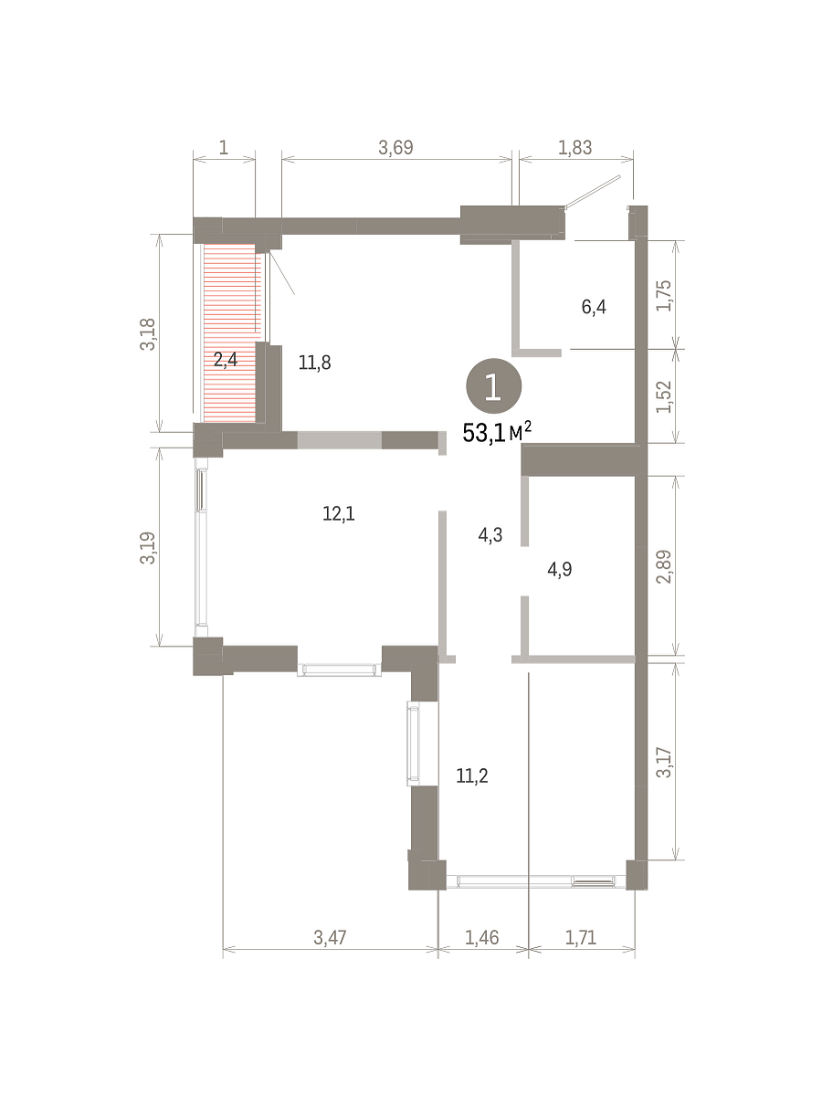 Площадь (общ/жил/кух), м2: 54.75/—/22.38