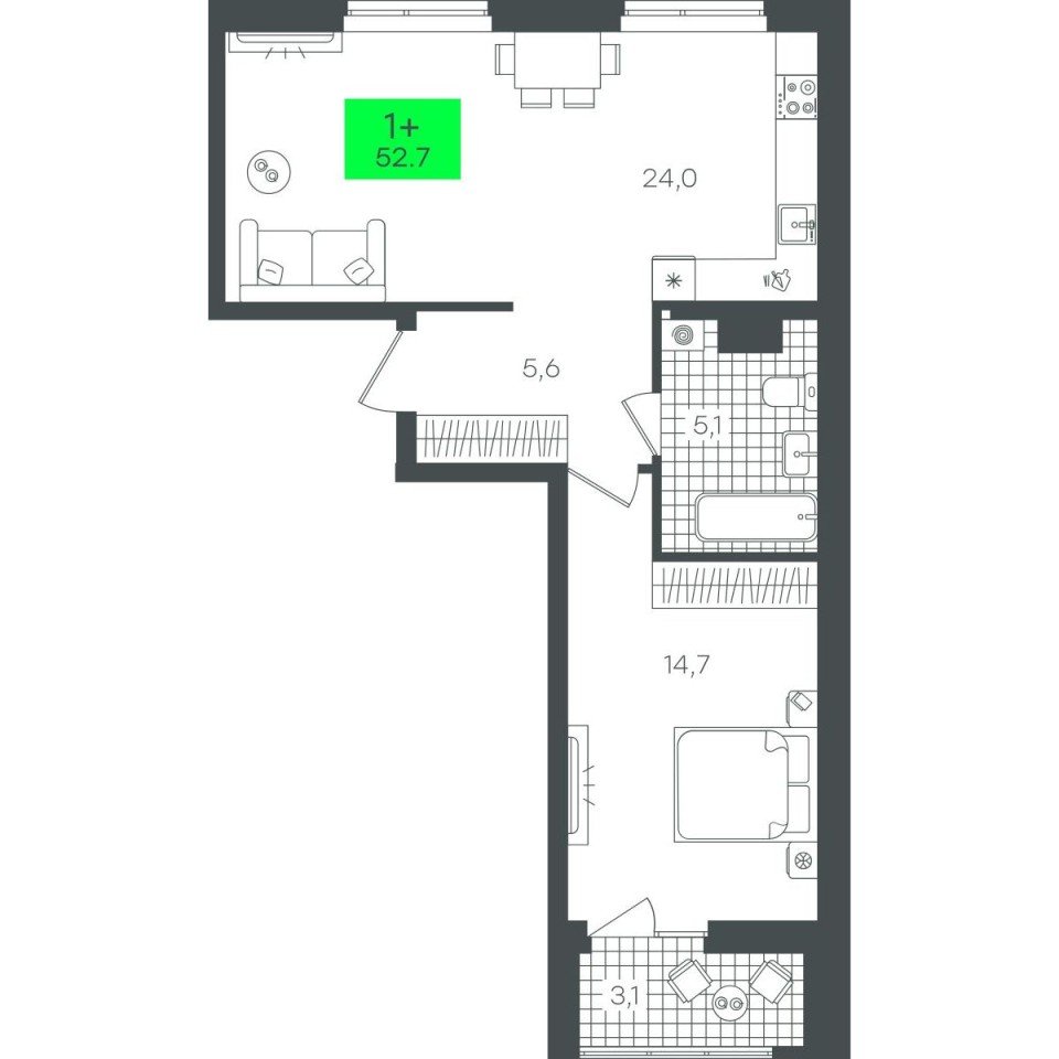 Купить новую однокомнатную квартиру 52.71 м² на 5/22 этаже в ЖК «Гранд Квартал», г. Тюмень за 7850000 ₽ | Агентство недвижимости «Вплюсе.Топ» — Агентство недвижимости "Вплюсе.Топ"