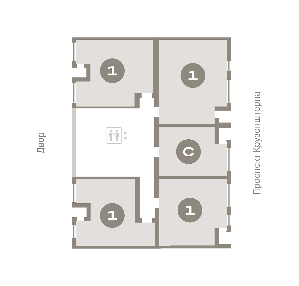Площадь (общ/жил/кух), м2: 42.9/29.2/—