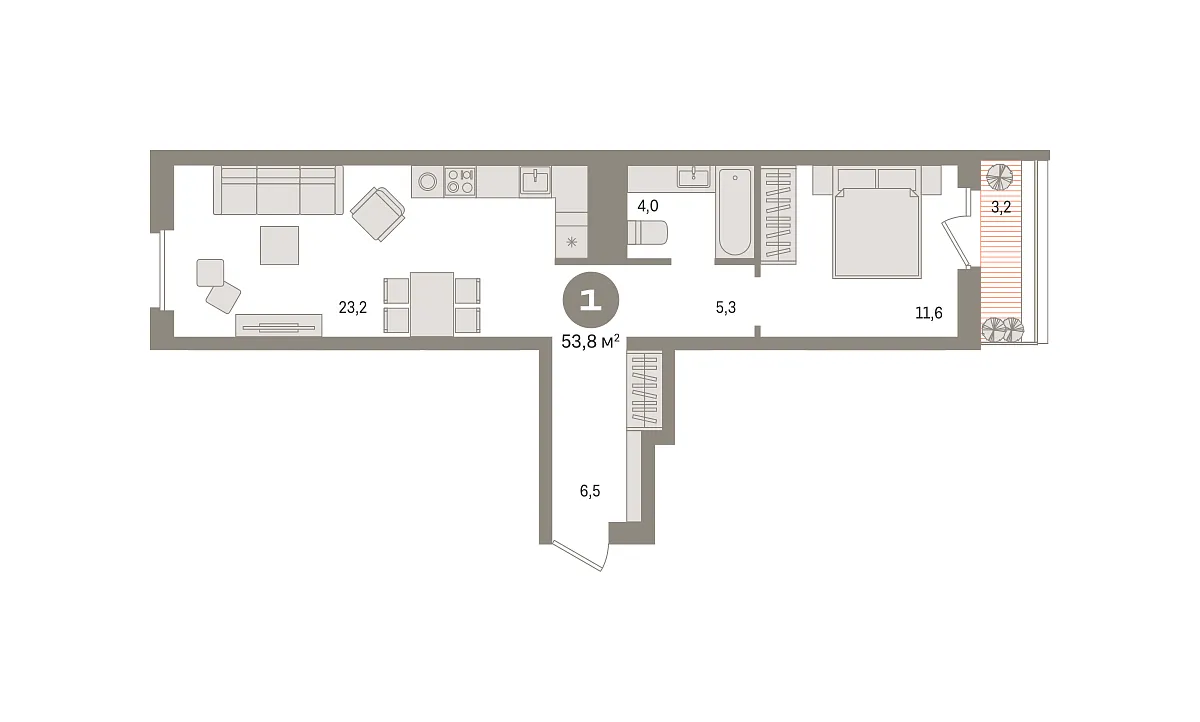 Купить новую однокомнатную квартиру 53.76 м² на 8/8 этаже в ЖК «Новин», г. Тюмень за 10170000 ₽ | Агентство недвижимости «Вплюсе.Топ» — Недвижимость России