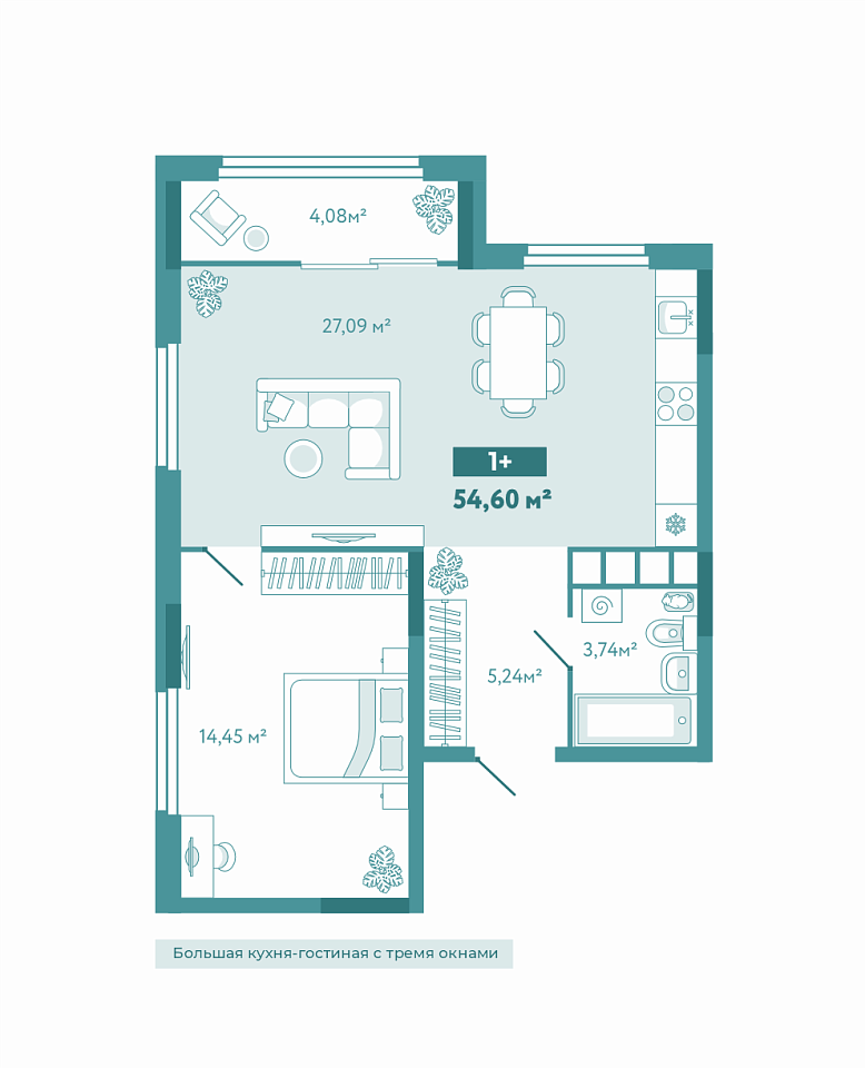 Общая площадь 54.6 м2