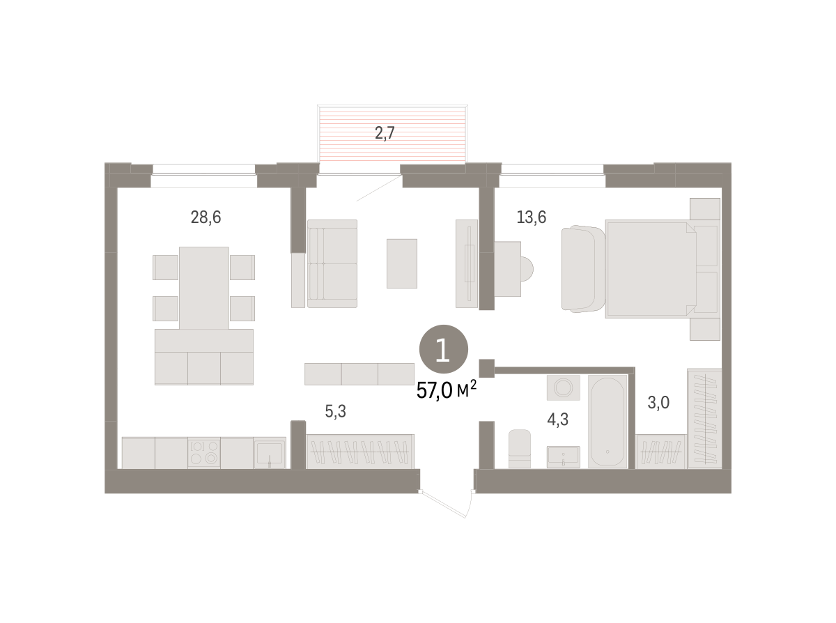 Площадь (общ/жил/кух), м2: 57/13.6/28.4