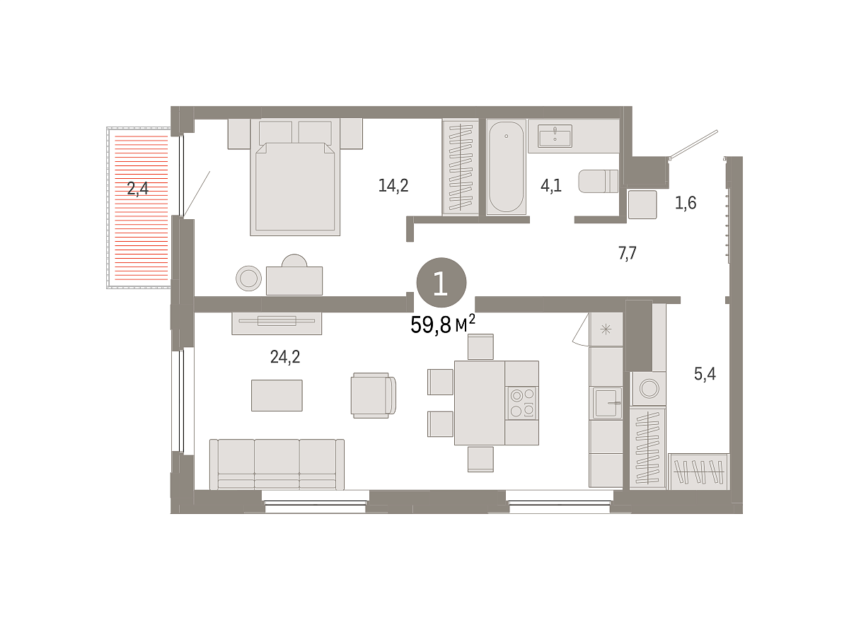 Количество комнат: 1, 59.76 кв.м.