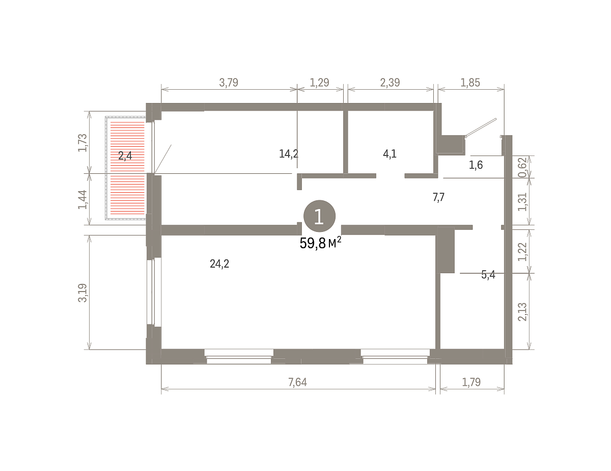 Общая площадь 59.76 м2