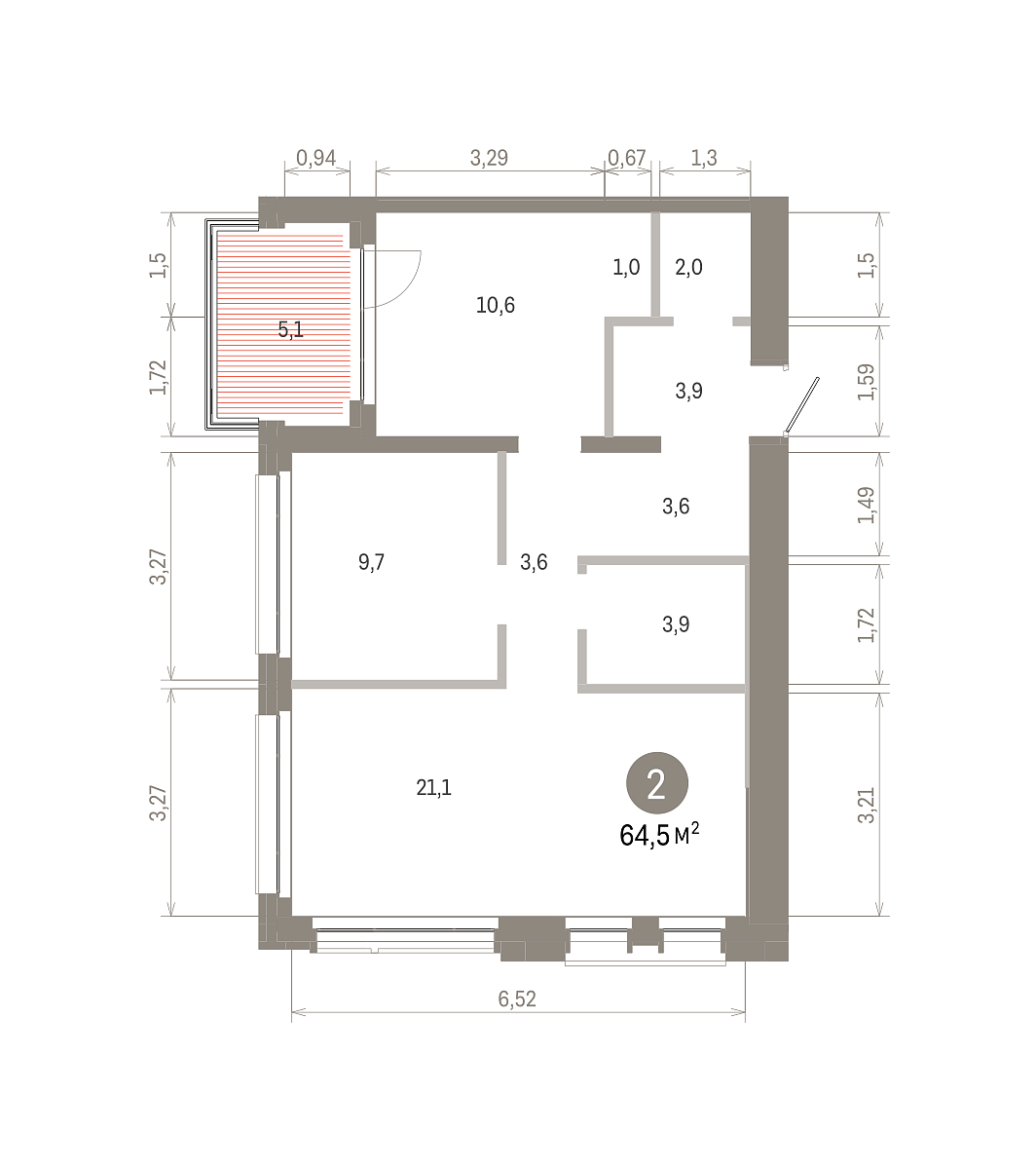 Площадь (общ/жил/кух), м2: 55.7/39.4/—