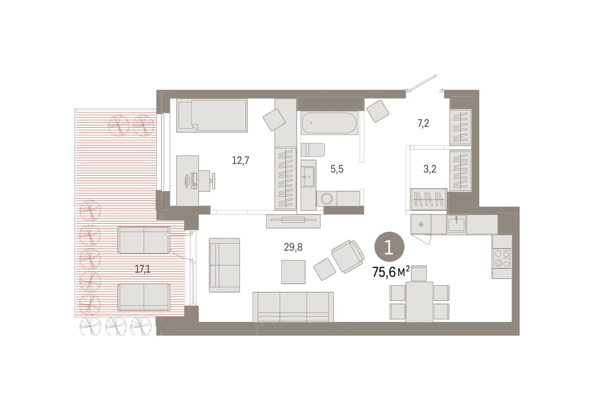 Купить новую однокомнатную квартиру 75.55 м² на 1/17 этаже в ЖК «Республики 205», г. Тюмень за 9660000 ₽ | Агентство недвижимости «Вплюсе.Топ» — Вплюсе.Топ Недвижимость