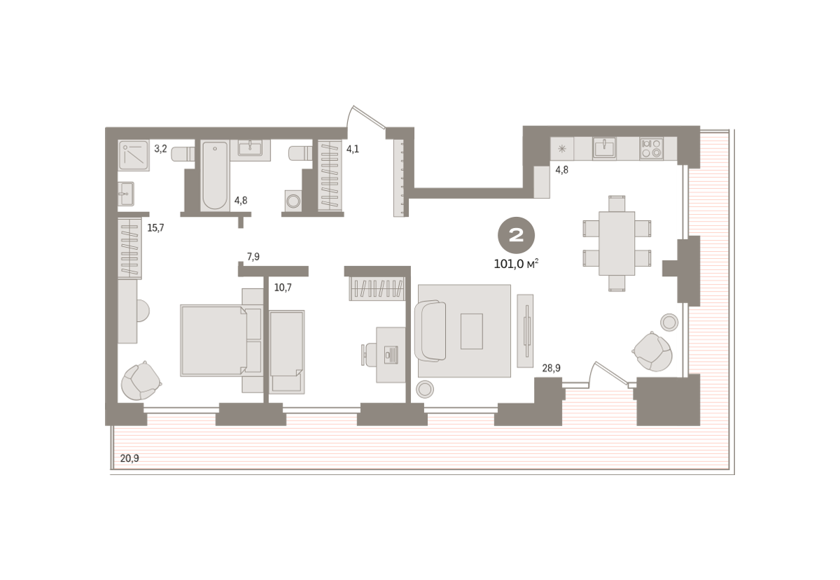 Площадь (общ/жил/кух), м2: 101/26.4/33.7