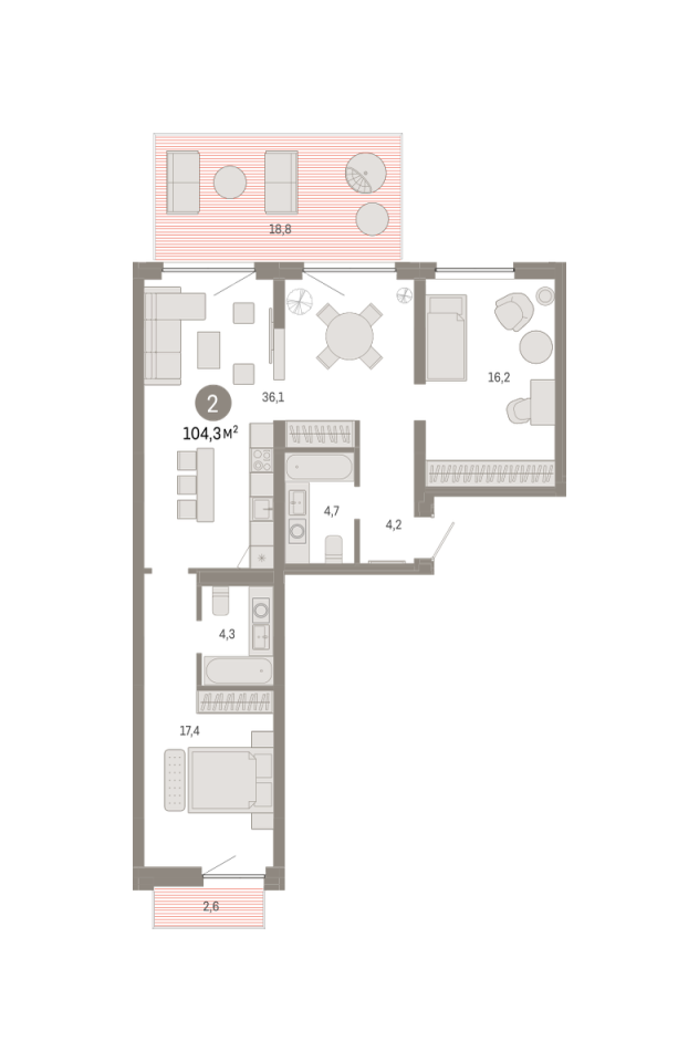 Купить новую двухкомнатную квартиру 104.25 м² на 2/9 этаже в ЖК «Южные кварталы», г. Тюмень за 14270000 ₽ | Агентство недвижимости «Вплюсе.Топ» — Агентство недвижимости "Вплюсе.Топ"