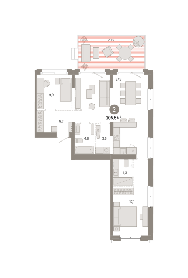 Купить новую двухкомнатную квартиру 105.47 м² на 2/7 этаже в ЖК «Кварталы «На Минской»», г. Тюмень за 19110000 ₽ | Агентство недвижимости «Вплюсе.Топ» — Агентство недвижимости "Вплюсе.Топ"