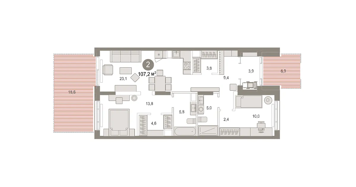Купить новую двухкомнатную квартиру 107.16 м² на 1/9 этаже в ЖК «Октябрьский на Туре», г. Тюмень за 11740000 ₽ | Агентство недвижимости «Вплюсе.Топ» — Недвижимость России