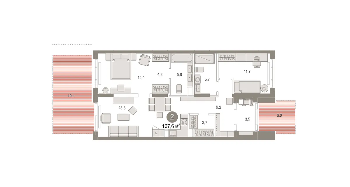 Количество комнат: 2, 107.56 кв.м.