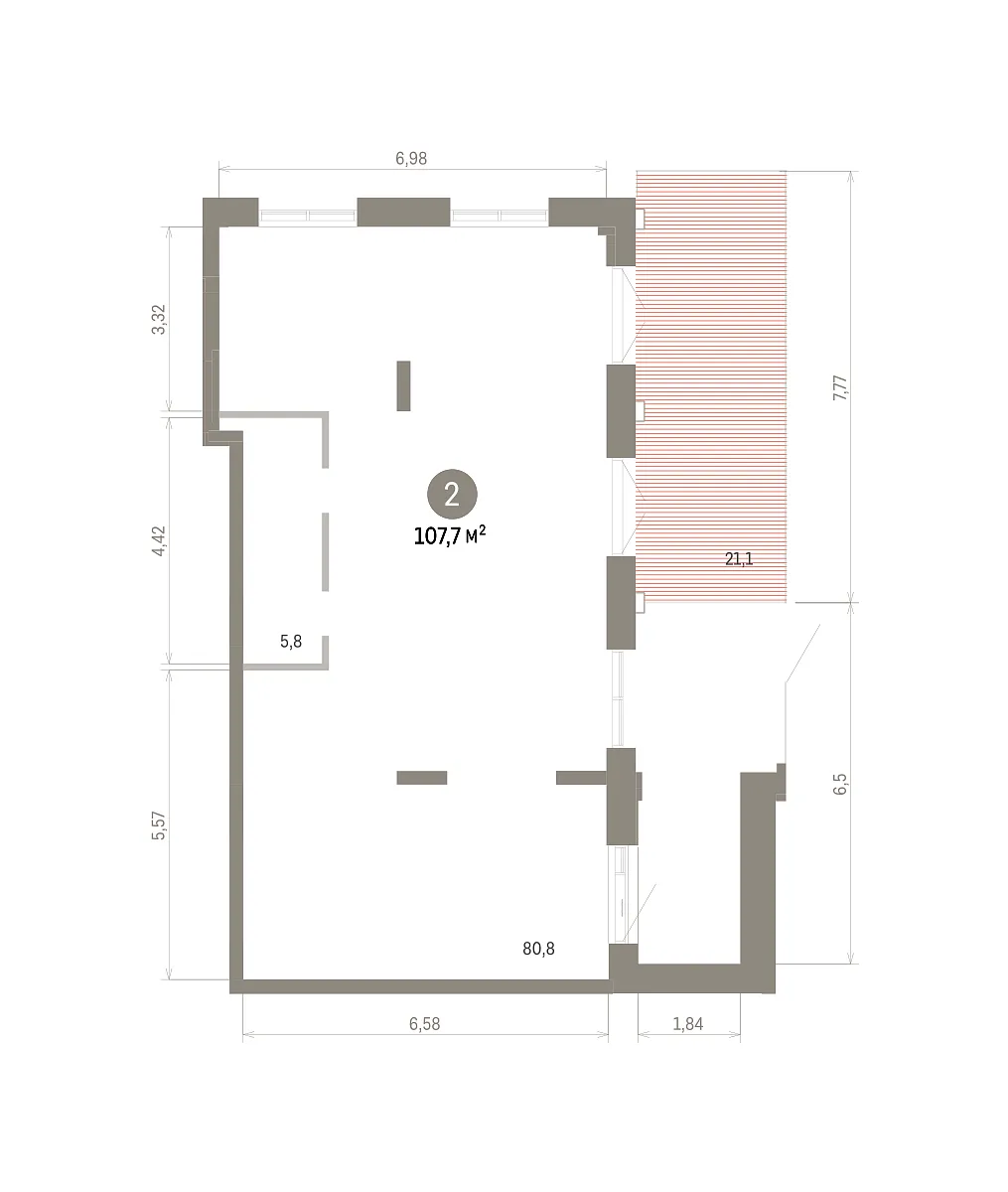 Площадь (общ/жил/кух), м2: 107.7/75.7/5.1