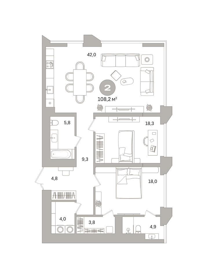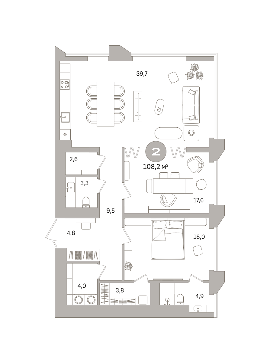 Купить новую двухкомнатную квартиру 108.18 м² на 13/25 этаже в ЖК «Гоголя 21», г. Тюмень за 48970000 ₽ | Агентство недвижимости «Вплюсе.Топ» — Недвижимость России