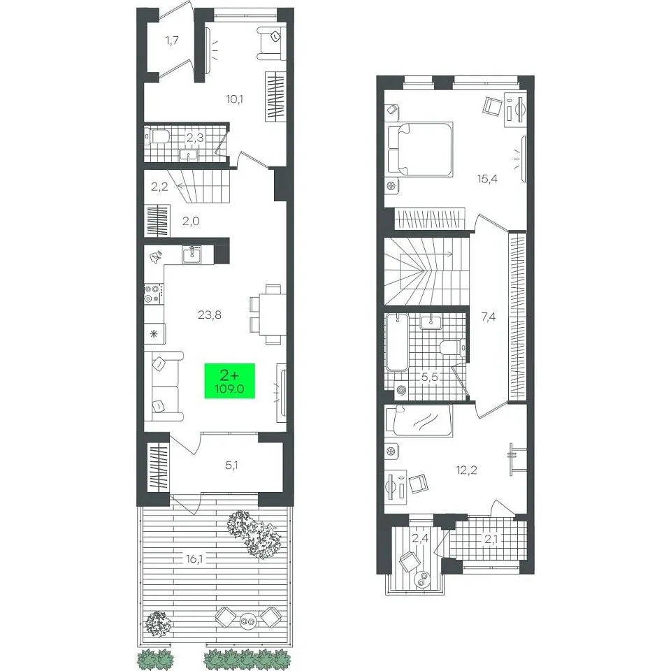 Количество комнат: 2, 109.09 кв.м.