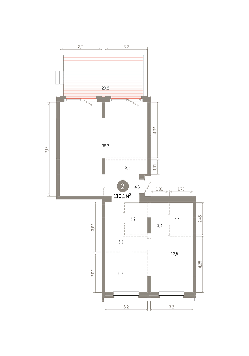 Площадь (общ/жил/кух), м2: 108.09/40.76/17.38