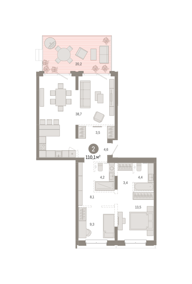 Купить новую двухкомнатную квартиру 110.06 м² на 2/7 этаже в ЖК «Кварталы «На Минской»», г. Тюмень за 19390000 ₽ | Агентство недвижимости «Вплюсе.Топ» — Агентство недвижимости "Вплюсе.Топ"