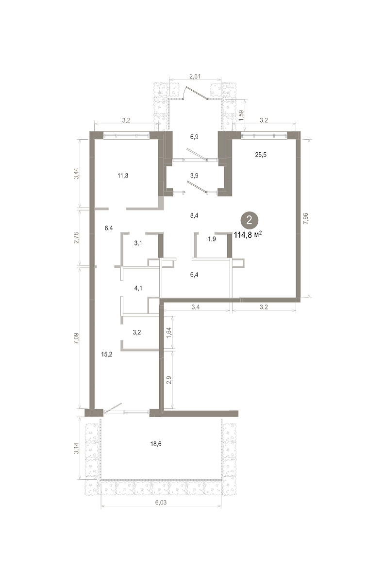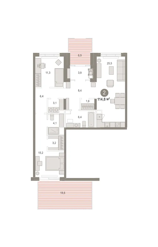 Количество комнат: 2, 114.83 кв.м.