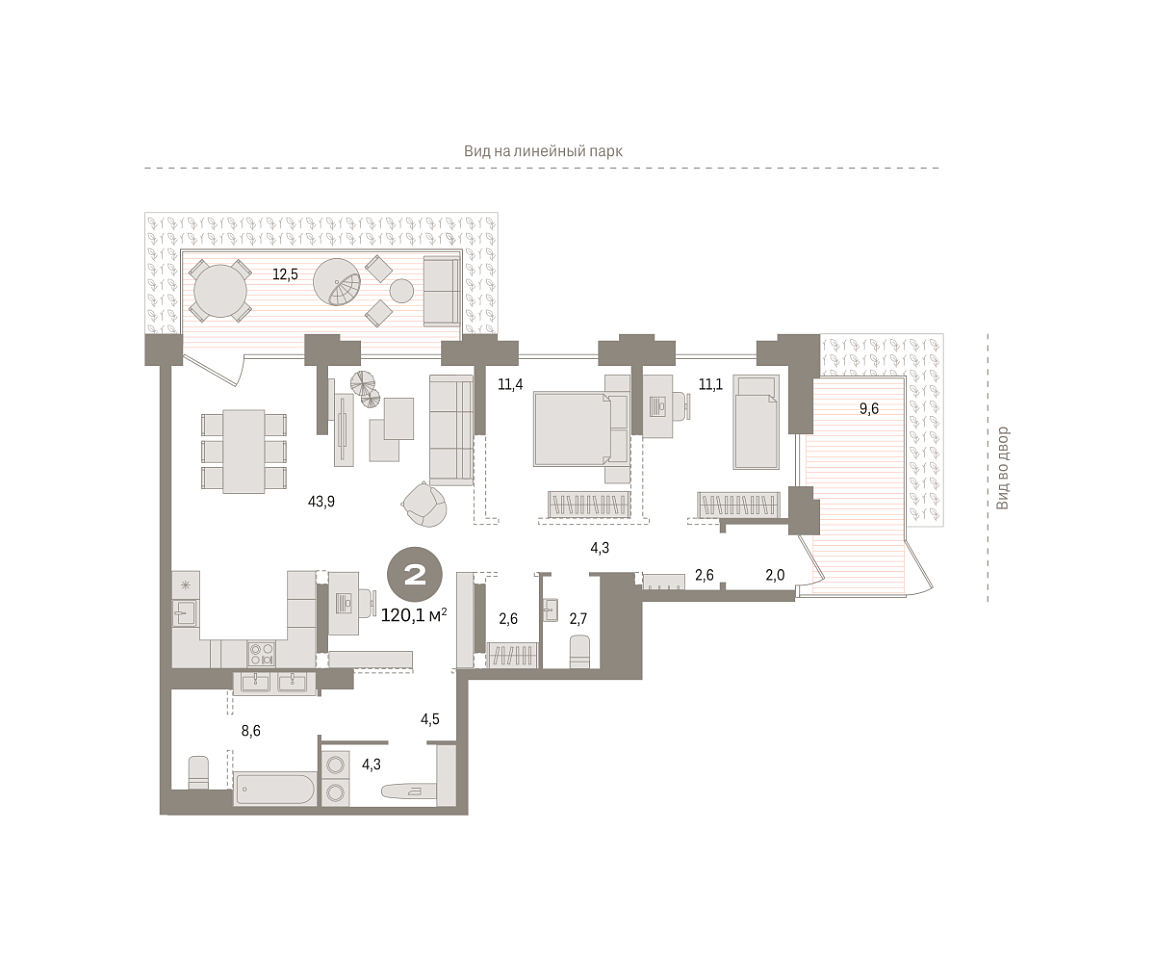 Количество комнат: 2, 120.1 кв.м.
