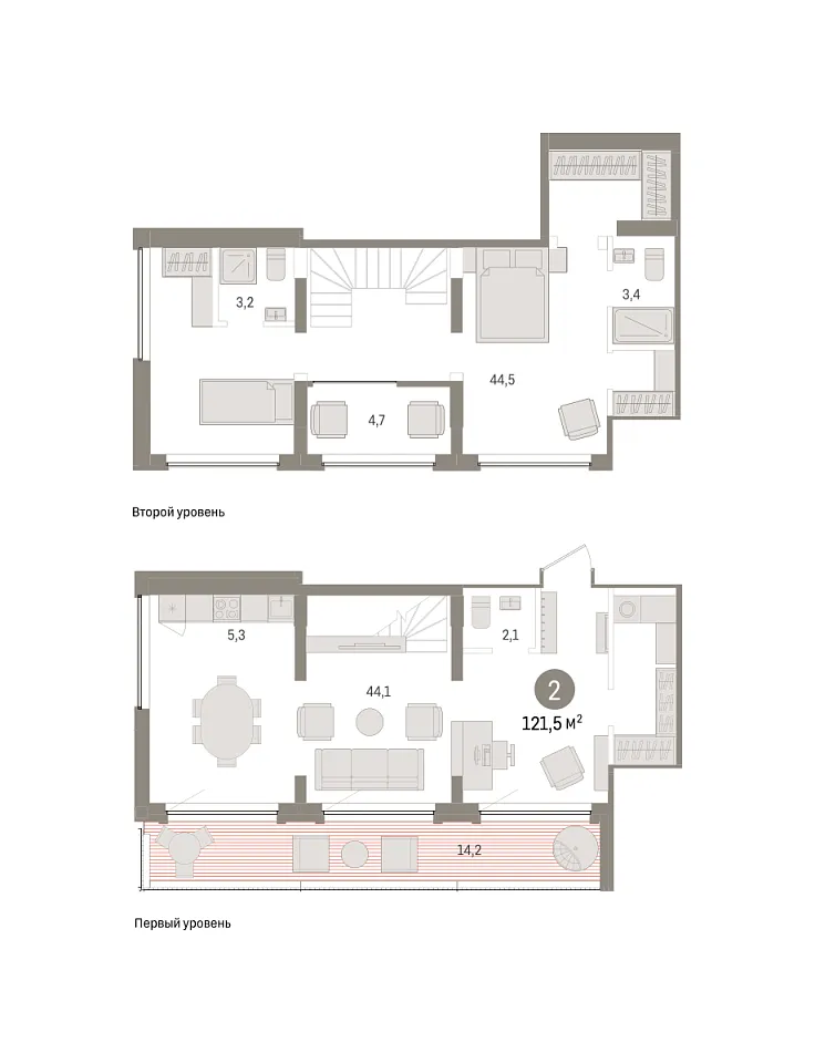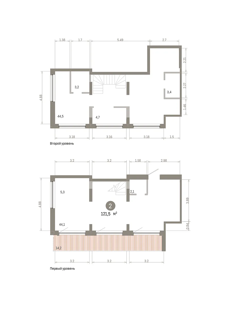 Количество комнат: 2, 121.49 кв.м.