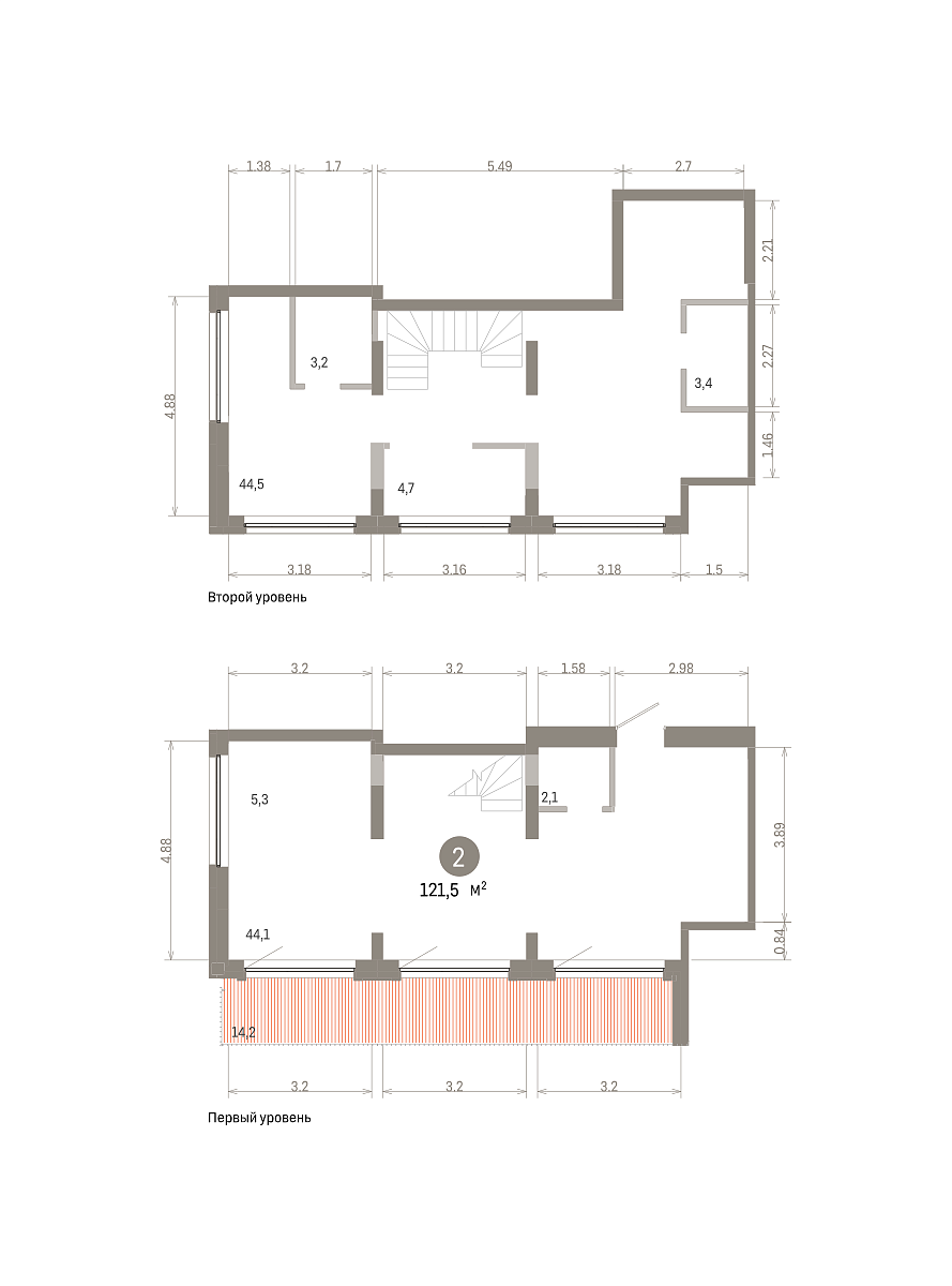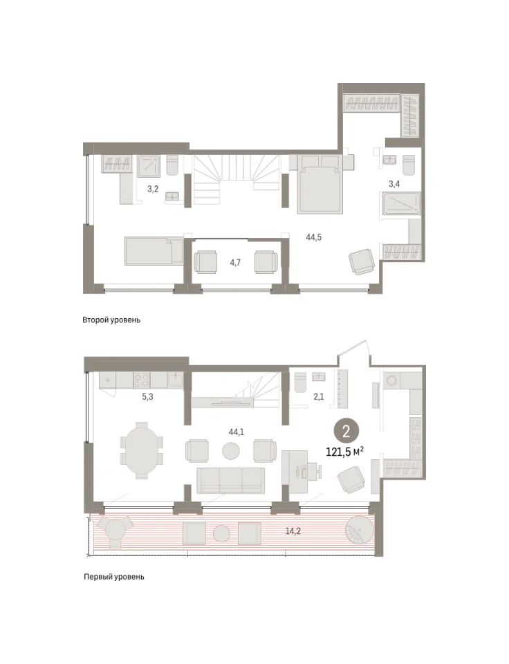 Площадь (общ/жил/кух), м2: 118.5/44.5/41.9