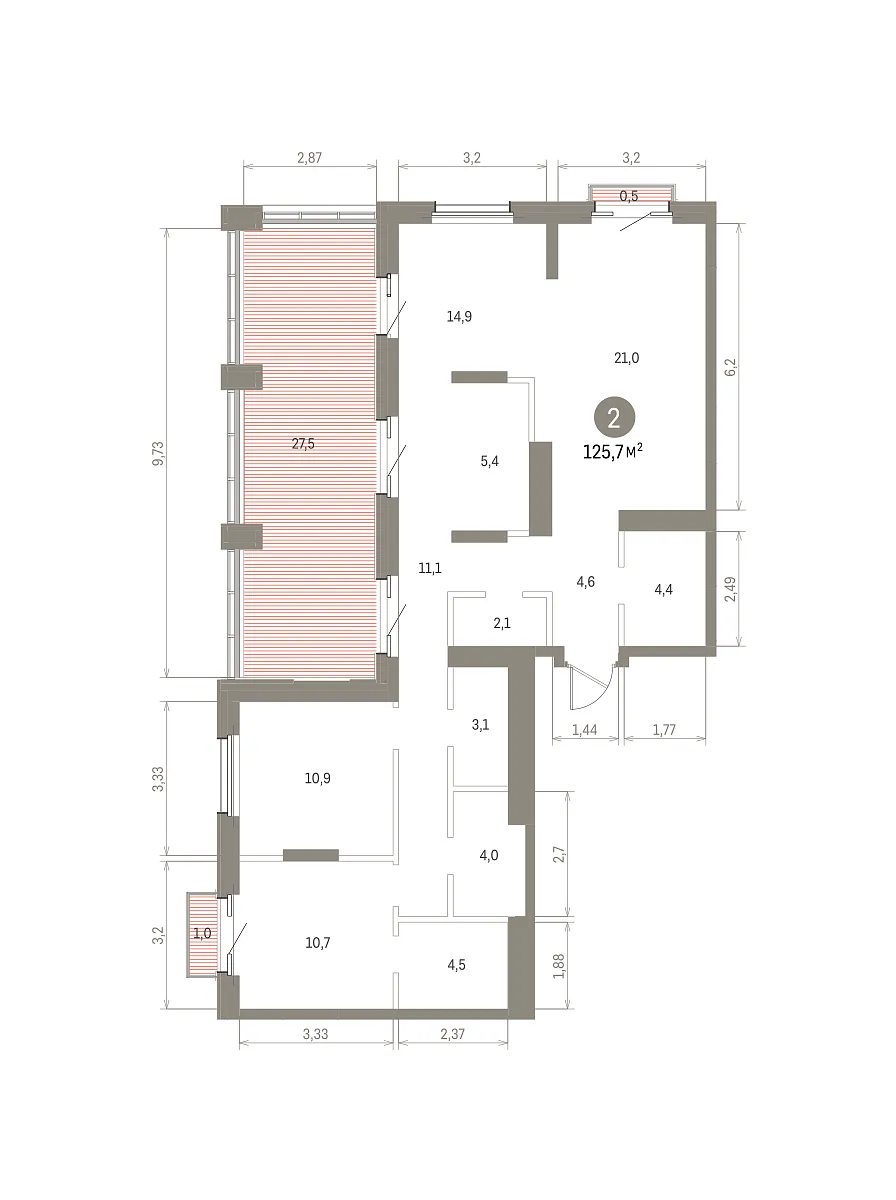 Количество комнат: 2, 125.7 кв.м.
