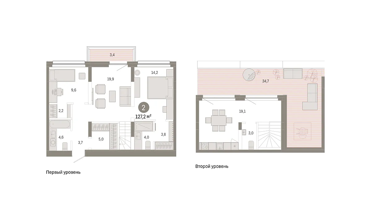 Количество комнат: 2, 127.2 кв.м.