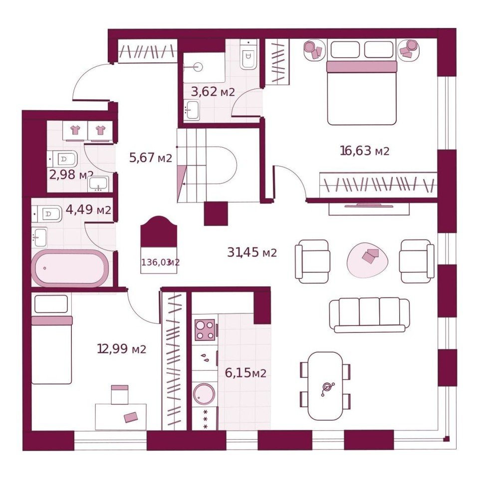 Купить новую двухкомнатную квартиру 136.03 м² на 5/6 этаже в ЖК «Secret Place», г. Тюмень за 38980000 ₽ | Агентство недвижимости «Вплюсе.Топ» — Агентство недвижимости "Вплюсе.Топ"
