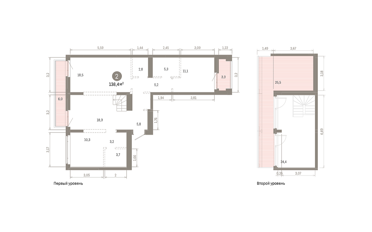Площадь (общ/жил/кух), м2: 149.07/55.84/3.67