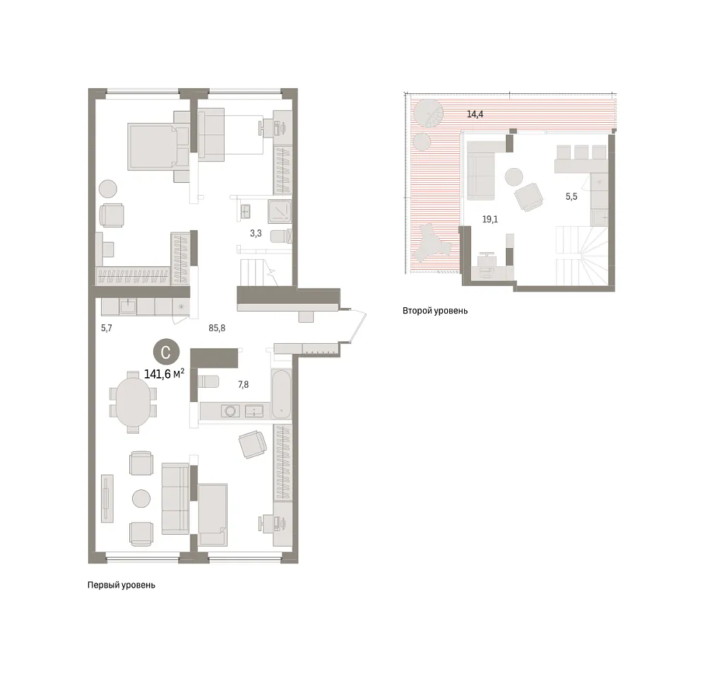 Площадь (общ/жил/кух), м2: 141.62/104.88/11.24